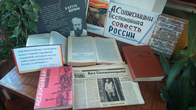 В Тепловской сельской библиотеке-филиале оформили книжную выставку-портрет «А. Солженицын. Беспокойная совесть России» (к 100-летию со дня рождения).
