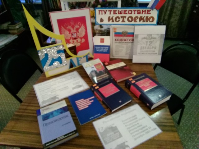 КОНСТИТУЦИЯ ПРАЗДНУЕТ СВОЁ 25 - ЛЕТИЕ. К ЭТОЙ ДАТЕ В БЕЛОЯРСКОЙ СЕЛЬСКОЙ БИБЛИОТЕКЕ-ФИЛИАЛЕ ДЛЯ ЧИТАТЕЛЕЙ ОФОРМЛЕНА КНИЖНАЯ ВЫСТАВКА: "25 - ПУТЕШЕСТВИЕ В ИСТОРИЮ". НА ВЫСТАВКЕ ПРЕДСТАВЛЕНА НОРМАТИВНО-ПРАВОВАЯ ИНФОРМАЦИЯ.