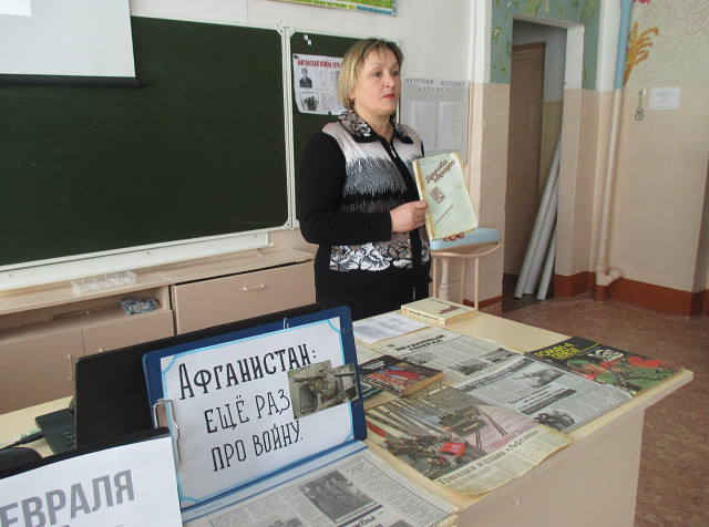 Ириновская библиотека-филиал приняла участие в мероприятии, Час мужества "Афганистан: еще раз про войну", посвященный 30-летию вывода советских войск из Афганистана. Заведующая Клубом, Николаева С. Н., рассказала о войне в Афганистане 1979 - 1989 годов. Учитель истории, Макеева В. С., рассказала об участнике той войны, жителе села Новоалексеевка, Цизоеве Рамазане Магомедовиче. Библиотекарь, Молодцова Е. В., провела Обзор у Книжной выставки, посвященной афганской войне. И рассказала о наших земляках, братьях Пойдо Сергее Ивановиче и Анатолии Ивановиче, воинах - интернационалистах. Трагедия и слава "Афгана" не дают нам забыть ту войну и по истечении 30 лет.