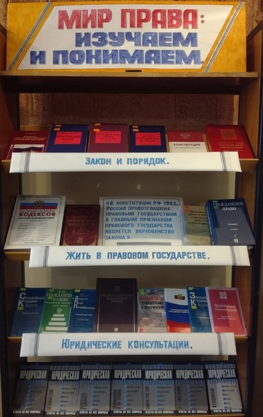 2018 » Октябрь » 21 » Книжная выставка «Мир права: изучаем и понимаем»