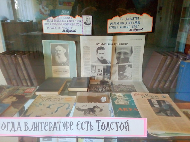 К юбилею Л. Н. Толстого Ириновская сельская  библиотека филиал оформила Книжную выставку " Когда в литературе есть Толстой"