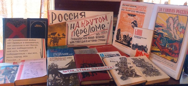В Тепловской сельской библиотеке-филиале оформили книжную выставку к 100-летию начала Гражданской войны (1918-1922 гг.) "Россия на крутом переломе... Гражданская война 1918-1922 гг. - величайшая трагедия в истории страны".