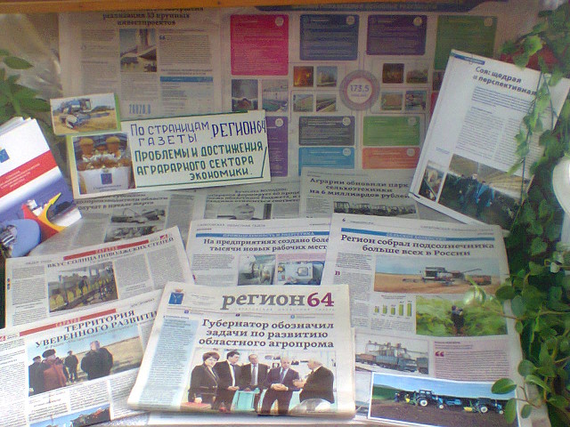 В Тепловской сельской библиотеке-филиале оформили информационную выставку "По страницам газеты "Регион 64". Проблемы и достижения аграрного сектора экономики"