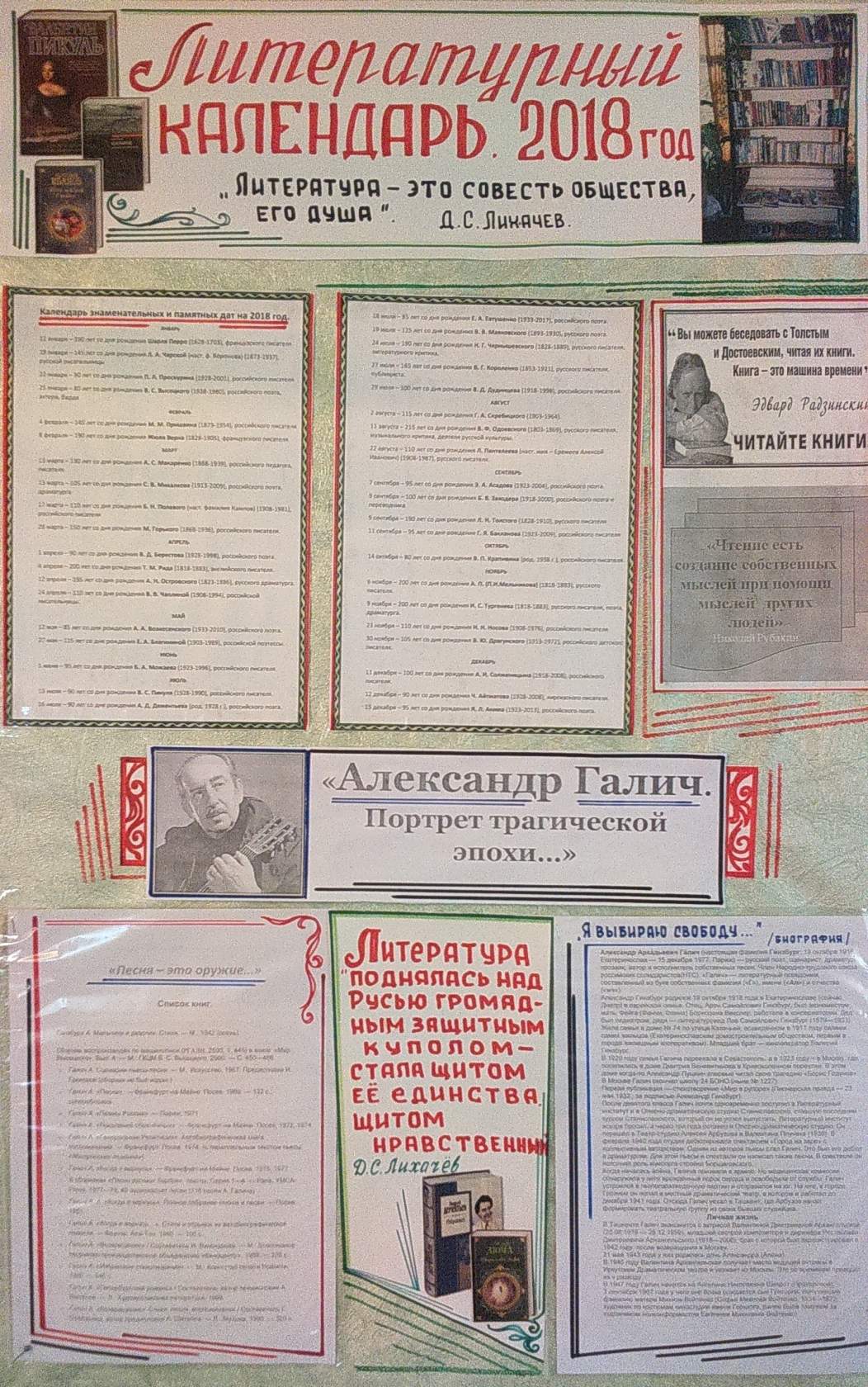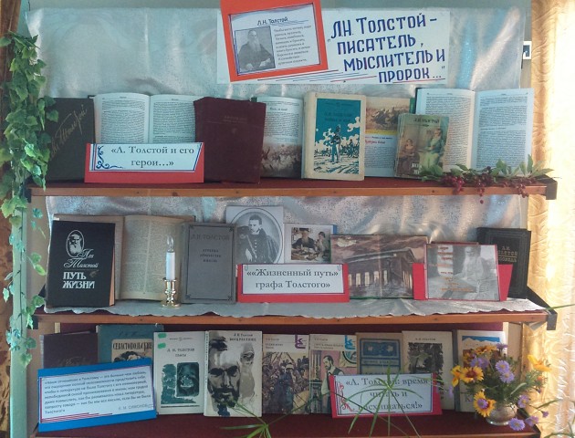 В Тепловской сельской библиотеке-филиале оформили книжную выставку-портрет "Л.Н. Толстой - писатель, мыслитель, пророк" (к 190-летию со дня рождения) с разделами: 1."Л. Толстой и его герои..."; 2."Жизненный путь графа Толстого"; 3."Л. Толстой: время читать и восхищаться!". 13 сентября на стенд "Литературный календарь 2018 год" оформили материал к 100-летию А. Галича "Портрет трагической эпохи...": биографический "Я выбираю свободу..." и список книг "Песня - это оружие!".